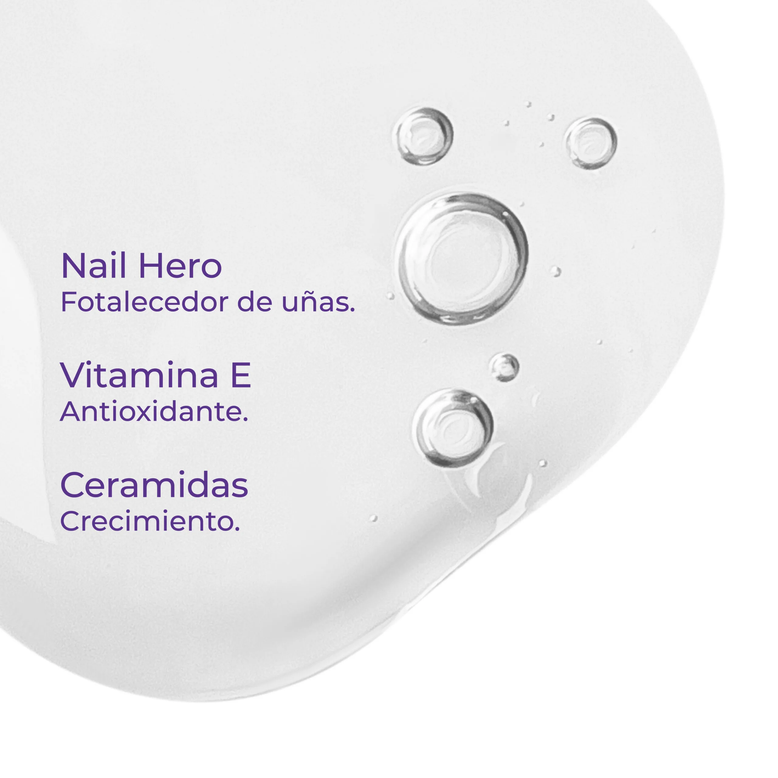 | Componentes | Nailhero, Ceramidas, Queratina y Vitamina E: activos que refuerzan la estructura de la uña y protegen contra quiebre y descamación. |