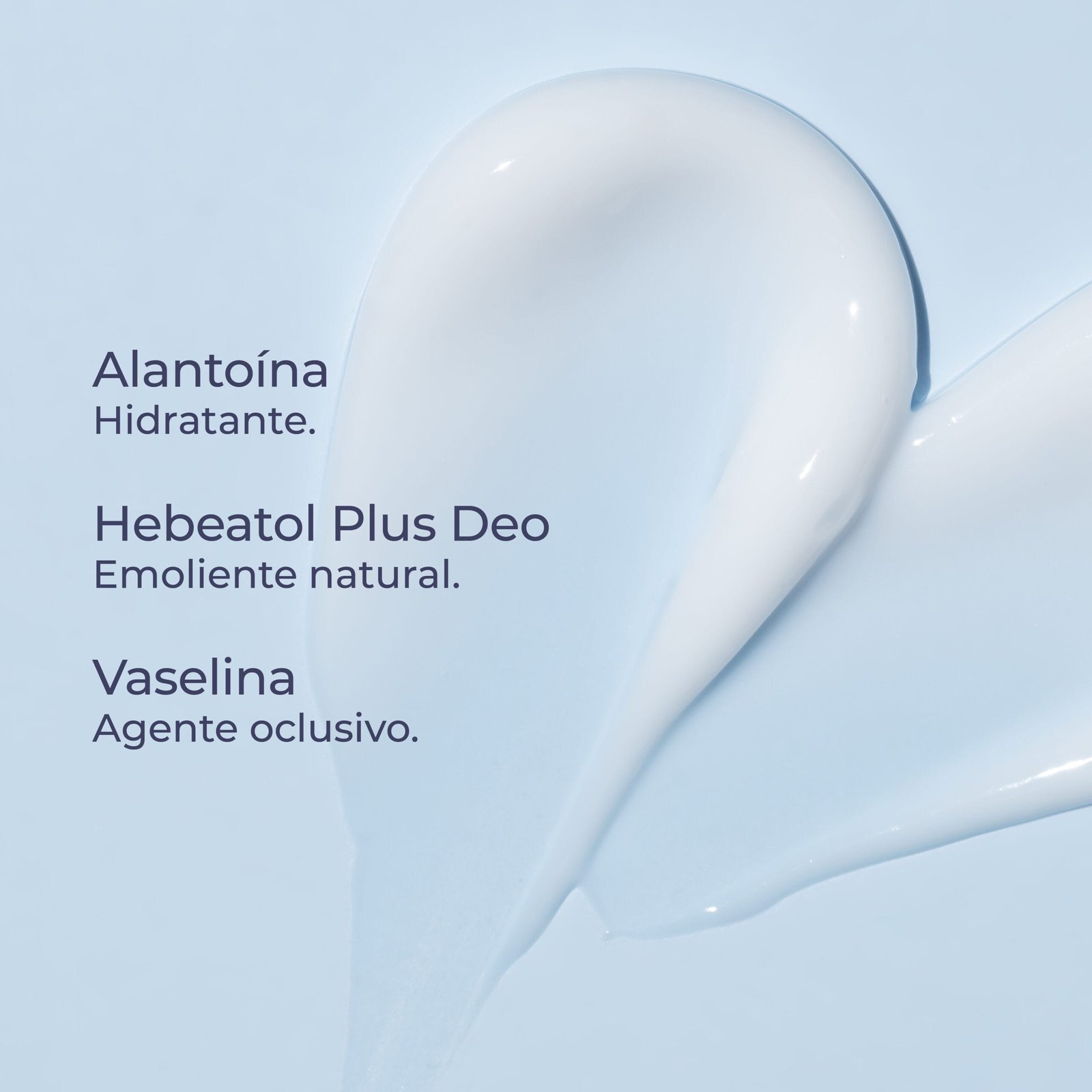 | Componentes | Alantoína, Hebeatol Plus y Vaselina: activos emolientes y reparadores que restauran la barrera cutánea, calman y protegen la piel. |