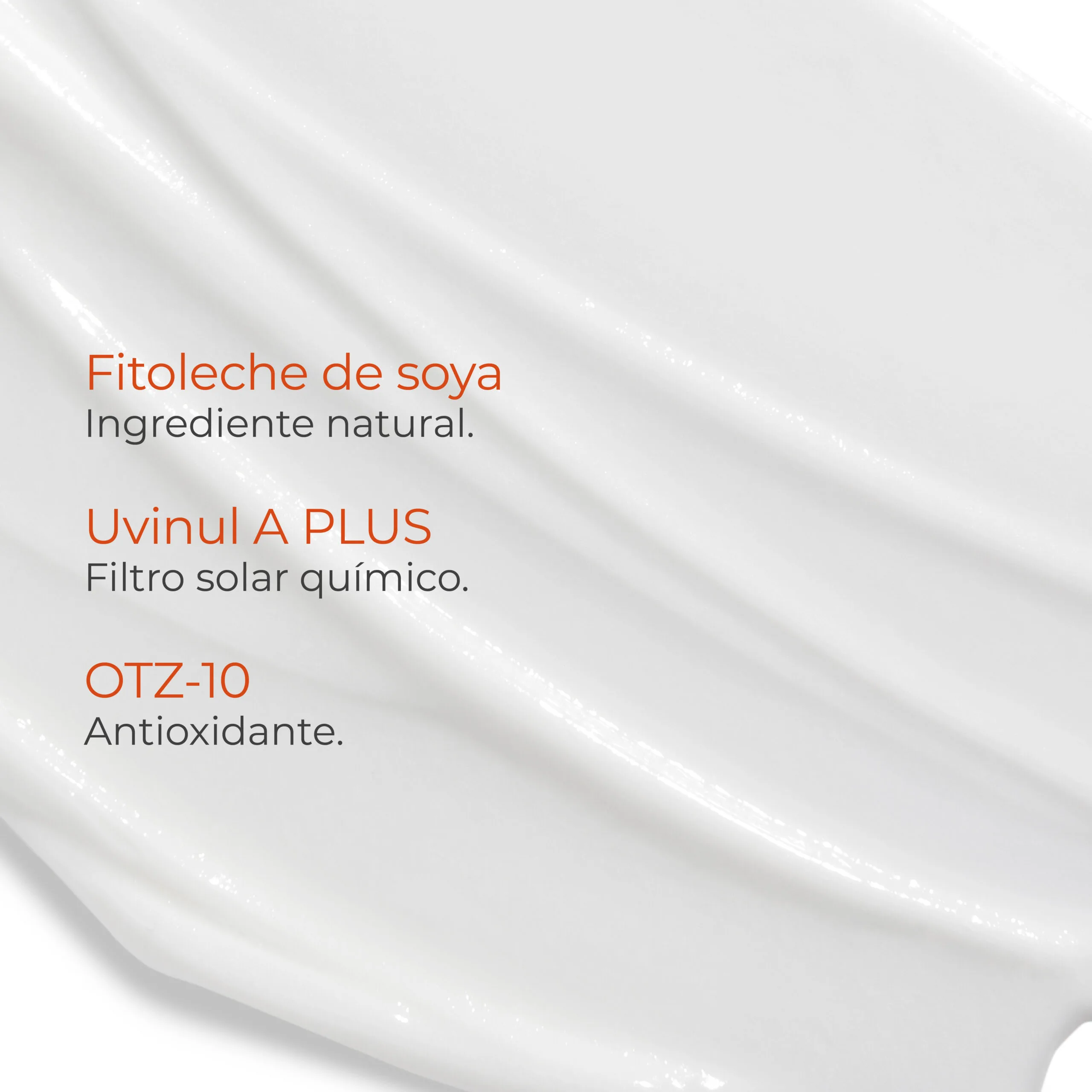 | Componentes | Etilhexiltriazona, OTZ-10 y Fitoleche de soya, combinación que brinda máxima protección, control de grasa y cuidado cutáneo., Formulado con Tinosorb S, Tinosorb M, Uvinul A Plus, Dióxido de Titanio nano, |
